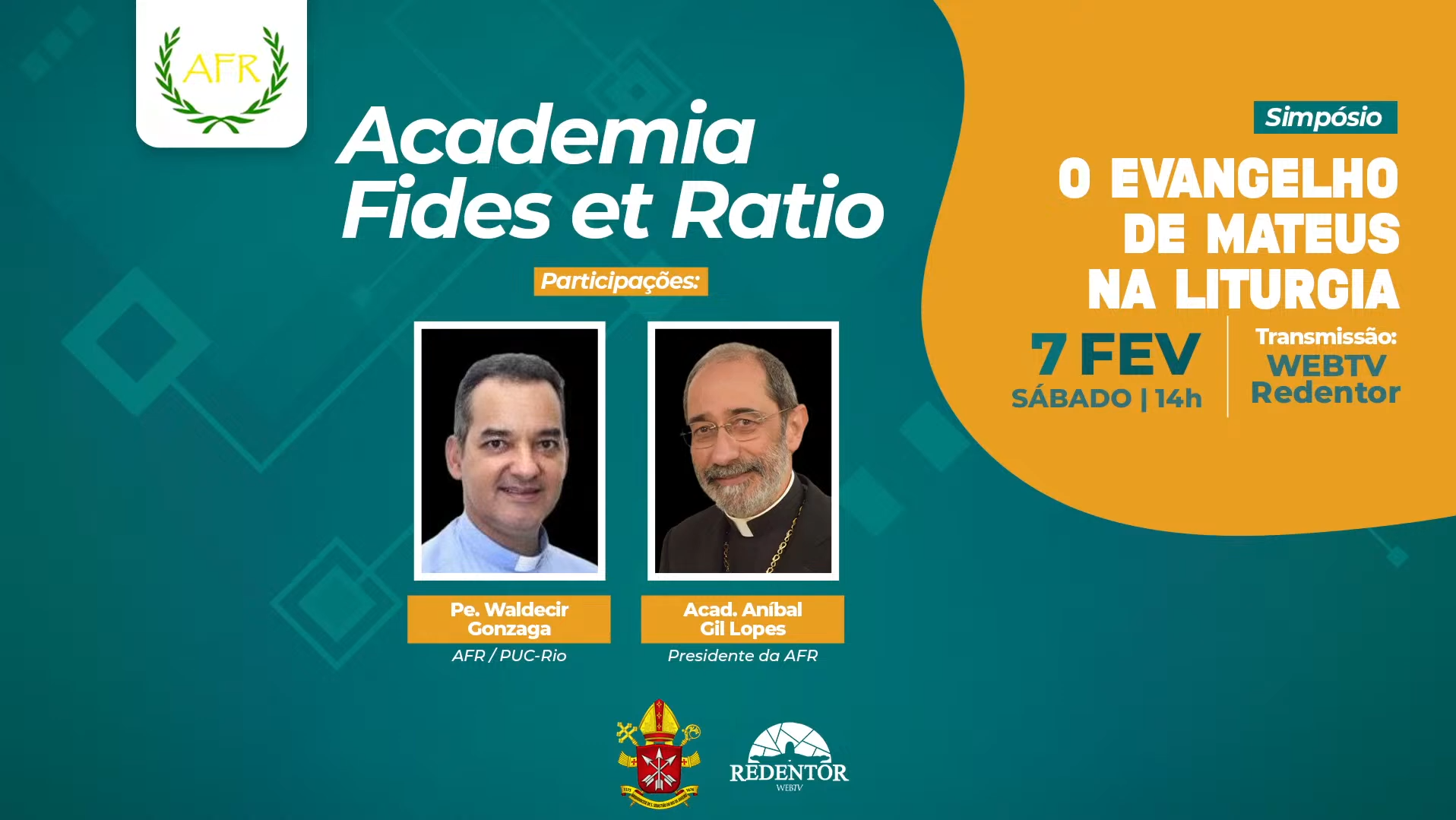 Nesta edição, o simpósio teve como tema “O Evangelho de Mateus na Liturgia”, sendo moderado pelo acadêmico Monsenhor Aníbal Gil Porto, Presidente da Academia Fides et Ratio, e apresentado pelo Pe. Waldecir Gonzaga (AFR / PUC-Rio).