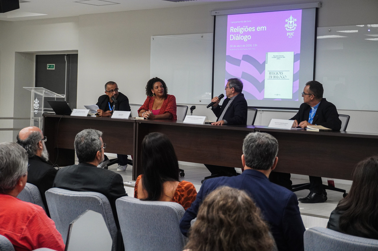 Na tarde do dia 8 de abril de 2026, às 13h, o Departamento de Teologia da PUC-Rio realizou o lançamento do livro “Religiões em Diálogo”, uma obra coletiva organizada pelos professores Waldecir Gonzaga e Claudio Jacinto da Silva. A publicação reúne 15 articulistas provenientes de diversas tradições religiosas e de diferentes setores comprometidos com a promoção da inter-religiosidade.